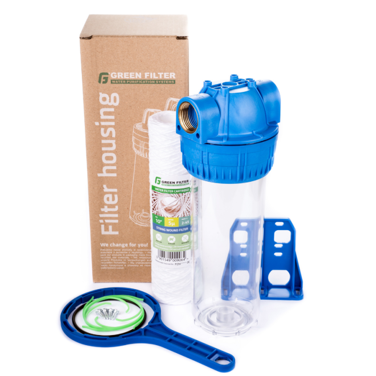 Trzy-częściowy 10" korpus do filtra - z przeźroczystym kloszem oraz zaworem odpowietrzającym. Produkt posiada mosiężny gwint o średnicy 1". Korpus wyposażony jest w podwójny o-ring, co zapewnia maksymalną szczelność.