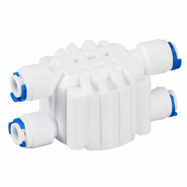 Zawór czterodrożny stosowany do systemów odwróconej osmozy, zawór odpowiedzialny jest za sterowanie przepływem wody w urządzeniu, w praktyce oznacza to że automatycznie zamyka i otwiera przepływ wody w urządzeniu.