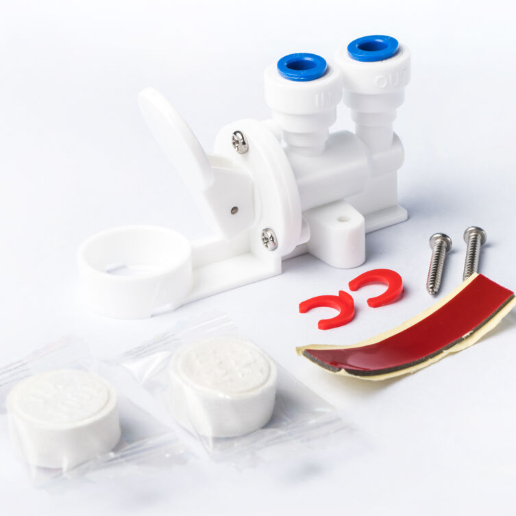 Zawór antyzalaniowy stosowany do domowych filtrów do wody montowanych w szafkach podzlewozmywakowych, zawór jest wyposażony w czujnik który w kontakcie z wodą automatycznie ją zamyka. Zawór montujemy na wężyku zasilającym wodę do filtra w najniżej położonym miejscu i jak najbliżej filtra do wody. W momencie rozszczelnienia się filtra, woda wypływająca w kontakcie z zaworem spowoduje w nim wykrycie nieszczelności a specjalny materiał znajdujący się w zawoże spowoduje zwiększenie jego objętości i jednocześnie zamknięcie wody zasilającej urządzenie.