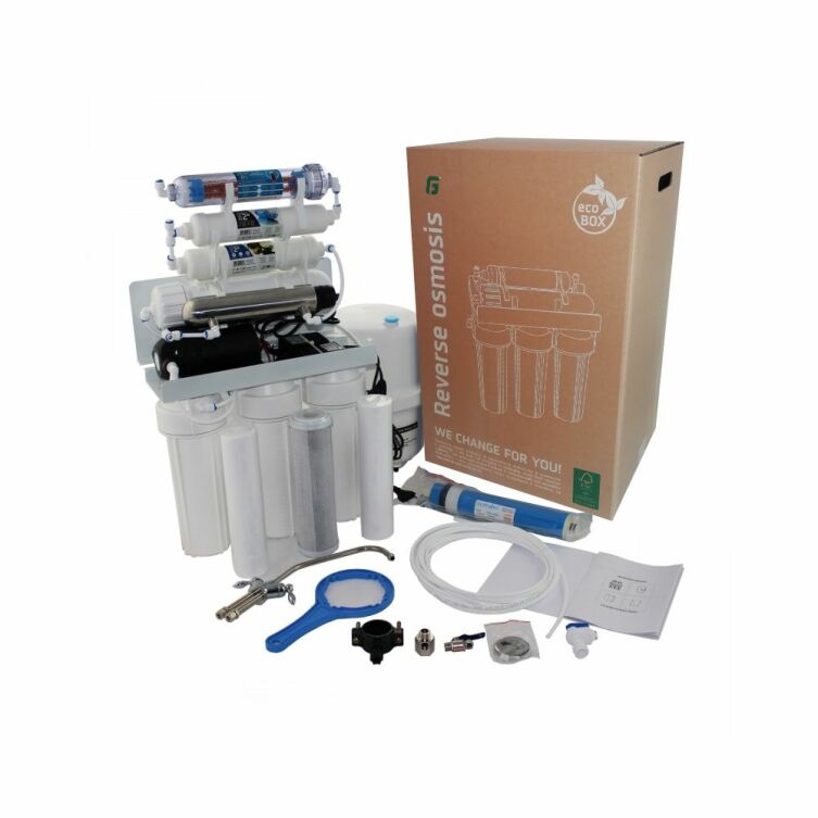 RO9 System Odwróconej Osmozy z wkładem mineralizującym, bioceramicznym, Pompą i Lampą UV