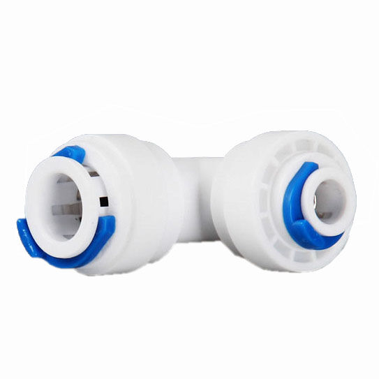 Kolanko 3/8" x 1/4" wężyk, w komplecie z wsuwkami zabezpieczającymi przed nie kontrolowanym wysunięciem przewodu ze złączki.