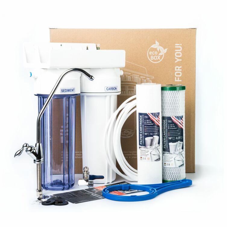 System instaluje się samodzielnie pod zlewem bez potrzeby angażowania fachowca. Po każdej wymianie wkładów warto przepłukać korpusy, a przy dłuższej przerwie w użytkowaniu wymienić wkłady na nowe.