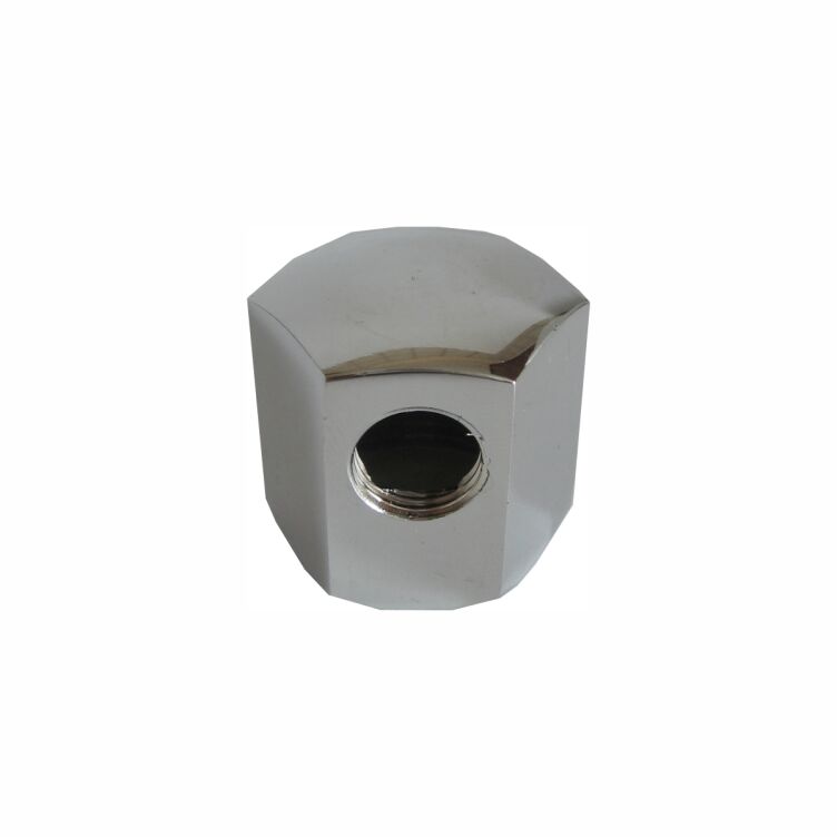 Przyłącze mosiężne chrom do zbiorników, 3/4Gw x 1/4Gw od 11GPD do 40GPD pod zawór 1/4". Zawór 1/4" z gwintem zewnętrznym wkręcamy w otwór umiejscowiony z boku przyłącza, uszczelniając taśmą teflonową.