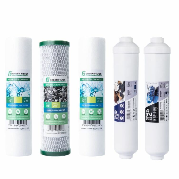 W skład zestawu wchodzą wysokiej jakości wkłady: filtr piankowy 20 µ (usuwający piasek, muł i rdzawe zanieczyszczenia), blok węglowy eliminujący chlor i połowę związków organicznych, kolejny filtr piankowy 5 µ chroniący membranę osmotyczną, filtr liniowy węglowy poprawiający smak i zapach wody oraz wkład mineralizujący, który wzbogaca wodę w magnez, sód, potas i inne minerały. Dzięki temu zestaw zapewnia skuteczne oczyszczanie na każdym etapie filtracji i wydłuża żywotność membrany osmotycznej w Twoim filtrze podzlewozmywakowym.