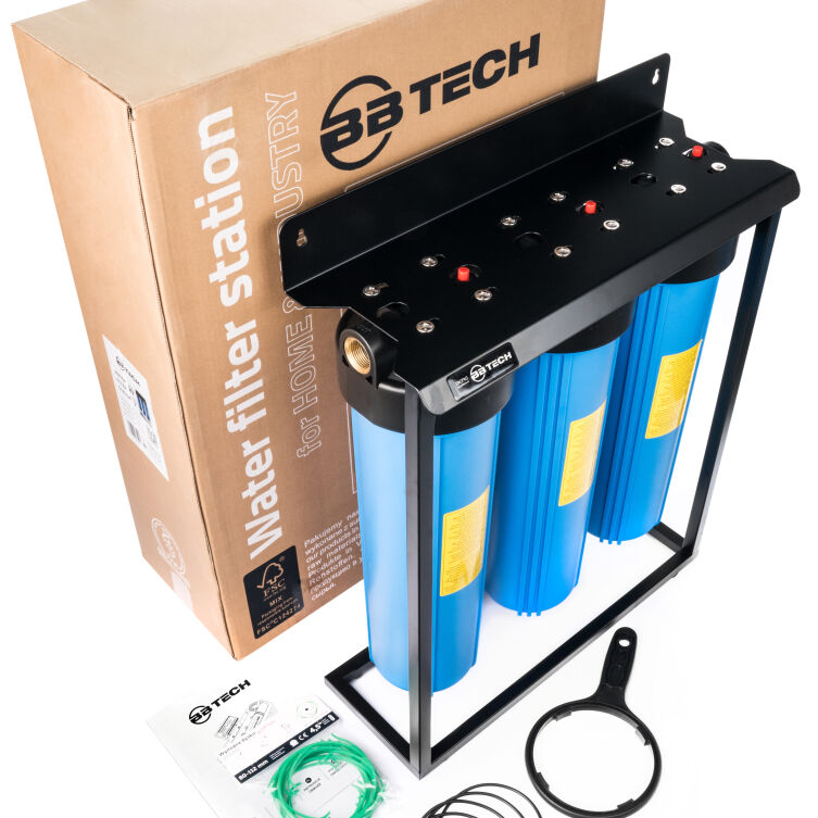 Zadbaj o czystą wodę w całym domu dzięki systemowi narurowemu Big Blue 3×20 BBTECH — profesjonalnej stacji filtrującej, która skutecznie usuwa zanieczyszczenia i zapewnia bezpieczeństwo wody dla Ciebie i Twojej rodziny.