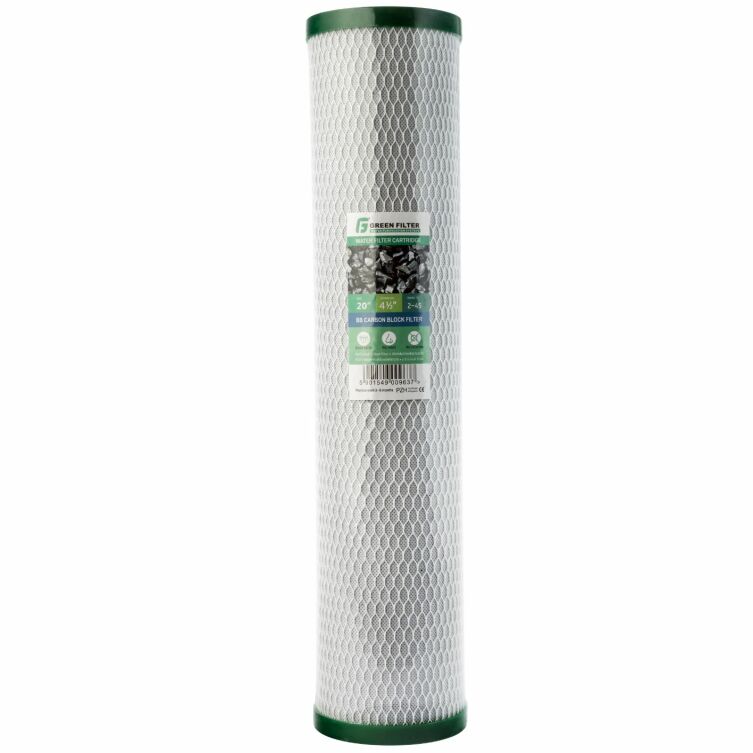 Filtr w rozmiarze 20” Big Blue (średnica 4,5") pasuje do standardowych obudów Big Blue i znajduje zastosowanie w filtrach centralnych, systemach odwróconej osmozy, nanofiltracji oraz instalacjach podzlewozmywakowych.