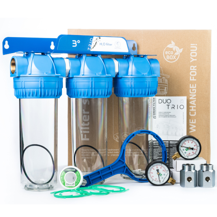 System TRIO stanowi idealną ofertę na filtrację wody na potrzeby gospodarstwa domowego. Urządzenia z tej serii są proste w obsłudze, gwarantują prostą wymianę wkładów i bezproblemową eksploatację.