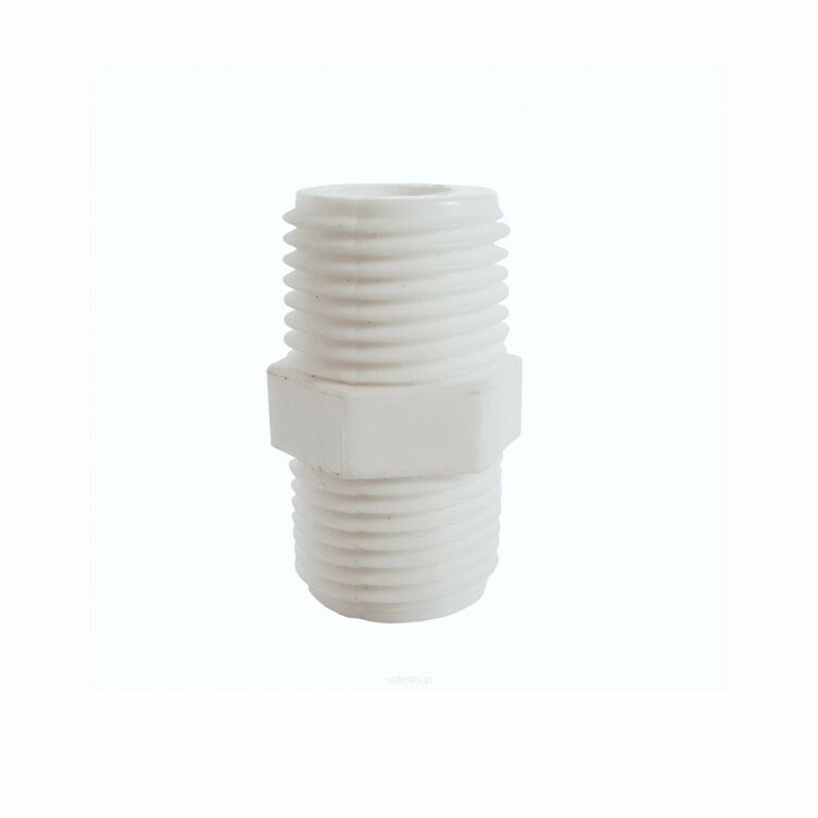 Złączka z gwintem zewnętrznym 3/4" do łączenia korpusów trzy częściowych. Złączka do łączenia korpusów trzy częściowych 3/4". Nypelem możemy łączyć ze sobą korpusy 3-częściowe z gwintem wewnętrznym 3/4”, w ten sposób możemy rozbudować o kolejne stopnie nasze własne urządzenie do filtracji wody. Każdy dodatkowy korpus to montaż dodatkowego wkładu. Do uszczelnienia stosujemy tylko i wyłącznie taśmę teflonową.